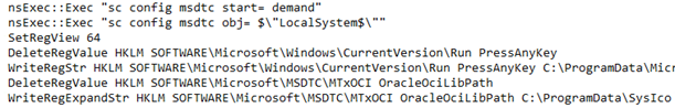 Figure 5: MSDTC service manipulation in NSIS Installer Script