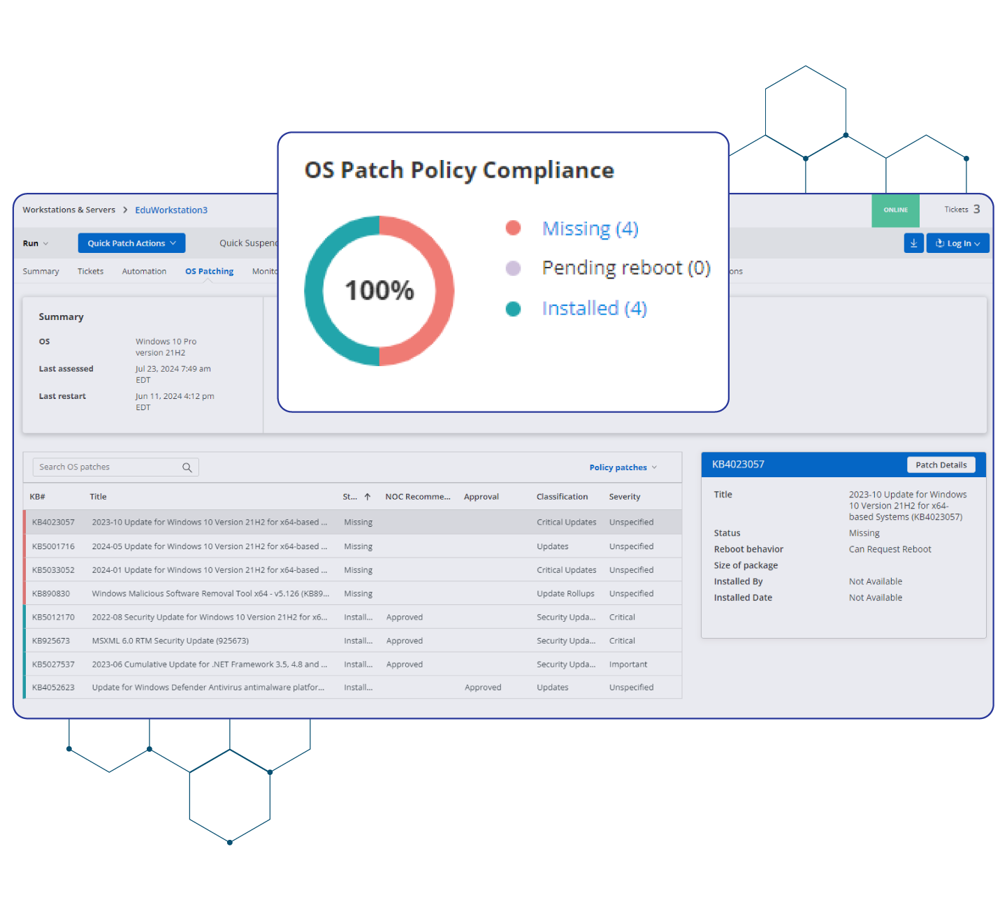 Eliminate manual patching headaches and reduce vulnerabilities. With ConnectWise RMM, patch management happens automatically, ensuring systems stay secure and compliant without constant oversight. Spend less time tracking updates and more time delivering value, all while dramatically lowering security risk.